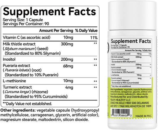 OxyEnergy Silymarin Milk Thistle 300mg – Liver Detox & Repair with Vitamin C, Inositol & Pueraria – 90 Veg Capsules