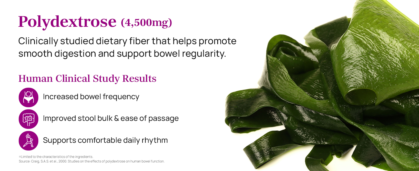 Features polydextrose, a prebiotic fiber that helps promote balanced gut flora and smooth bowel movements, plus Garcinia Cambogia for gentle digestive support.
