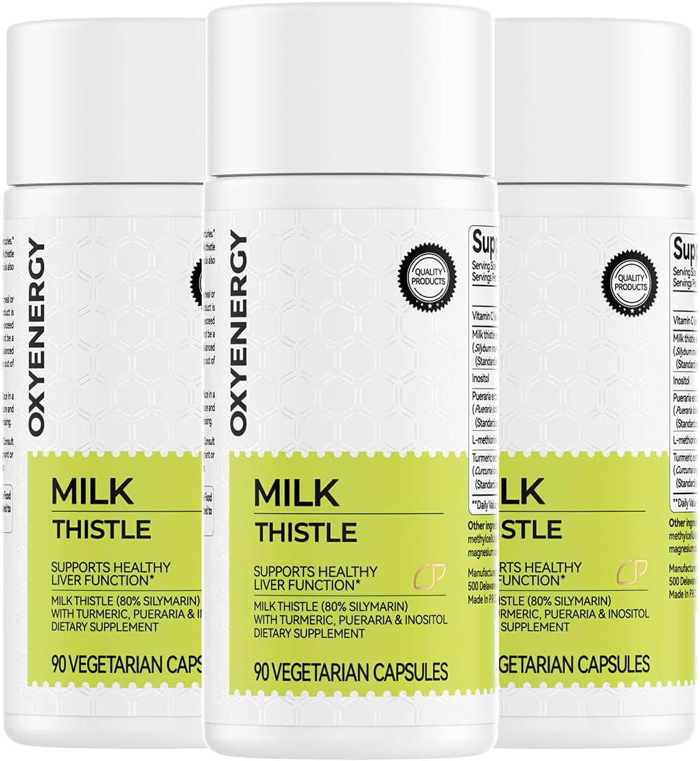 OxyEnergy Silymarin Milk Thistle 300mg – Liver Detox & Repair with Vitamin C, Inositol & Pueraria – 90 Veg Capsules